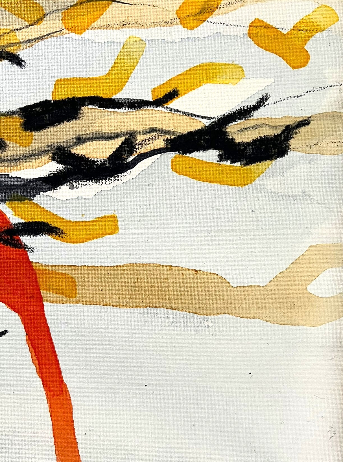 Acrylique, Fusain, Bâton d'huile sur Toile Brute 60x70 cm, 2024